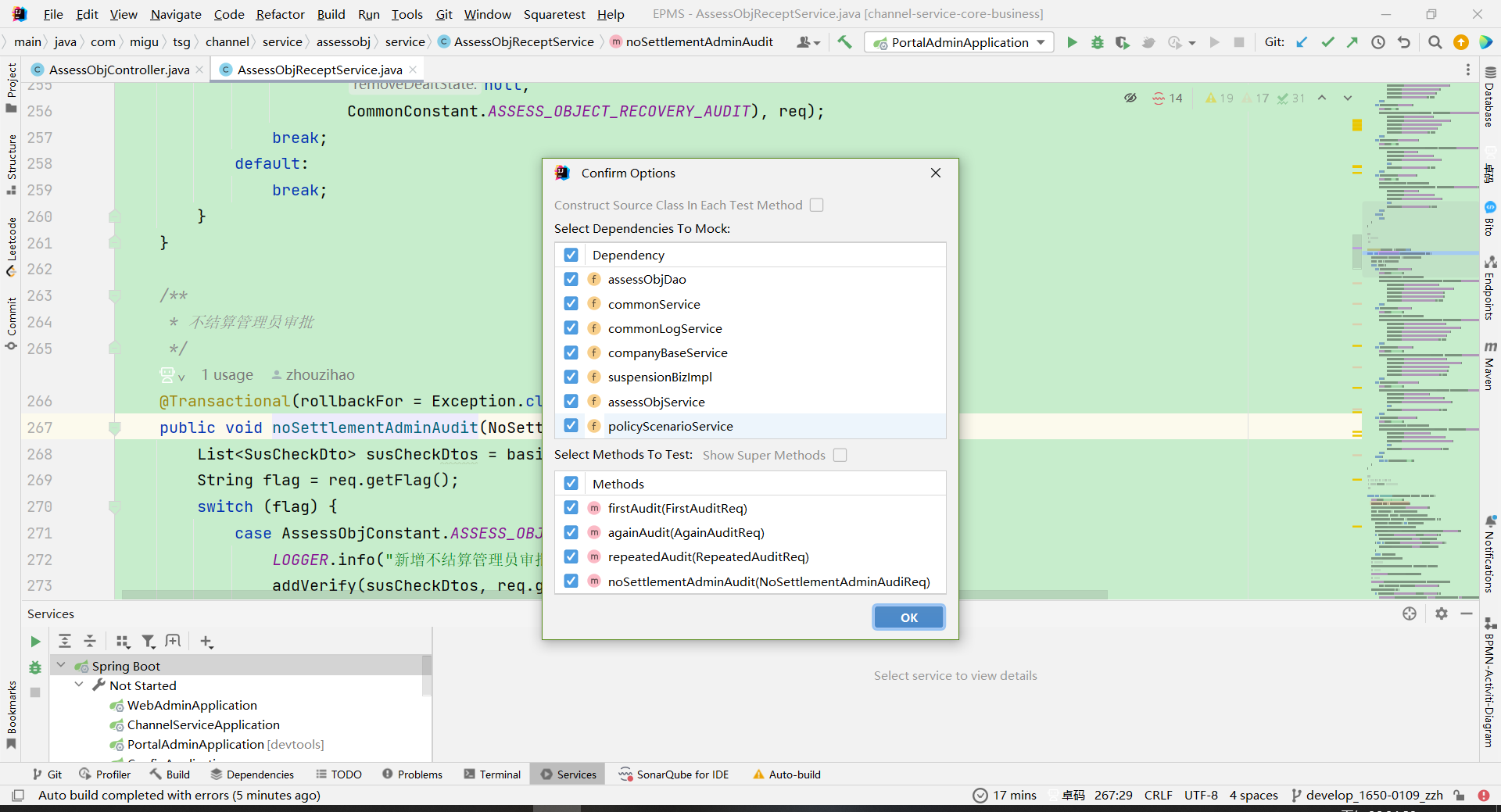 2. 选择生成单元测试